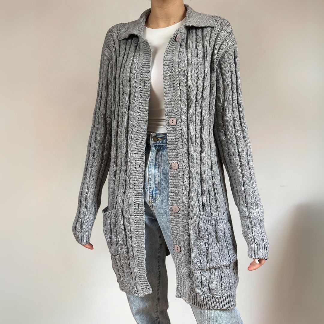 Long Grey Cardigan UK12
